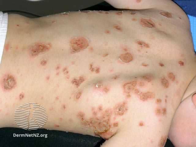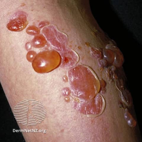 زرد زخم تاولی به صورت تاول های بزرگتر پر از مایع ظاهر می شود. هنگامی که این تاول ها می ترکند، ممکن است زخمی از خود به جای بگذارند.